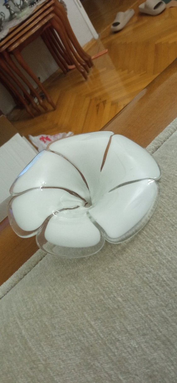 Beyaz, desen içermeyen, modern tasarımlı cam kase, şık masa düzenleri için uygundur. ️