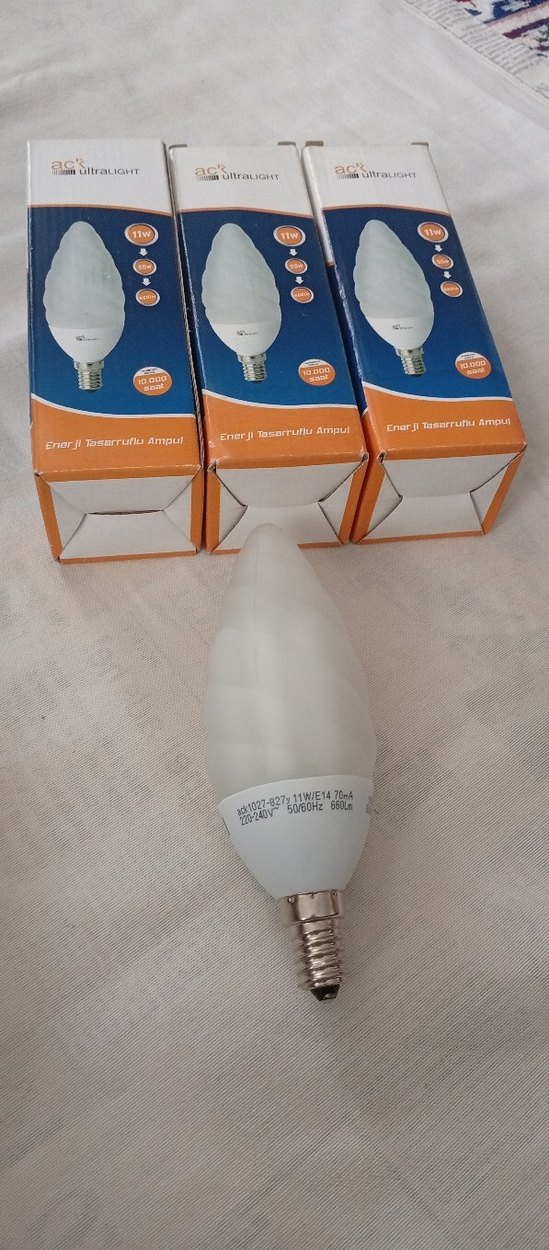 GÜN IŞIĞI TASARRUFLU AVİZE AMPULÜ E14 SARI IŞIK 11W. İLANDAKİ FİYAT 3 ADET İÇİNDİR.
