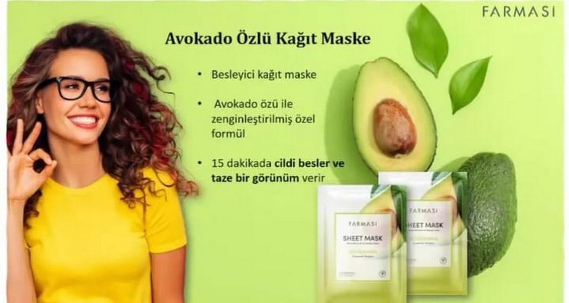 Avokado özüyle zenginleştirilmiş besleyici kağıt maske, 15 dakikada cildi besler ve taze bir görünüm verir.