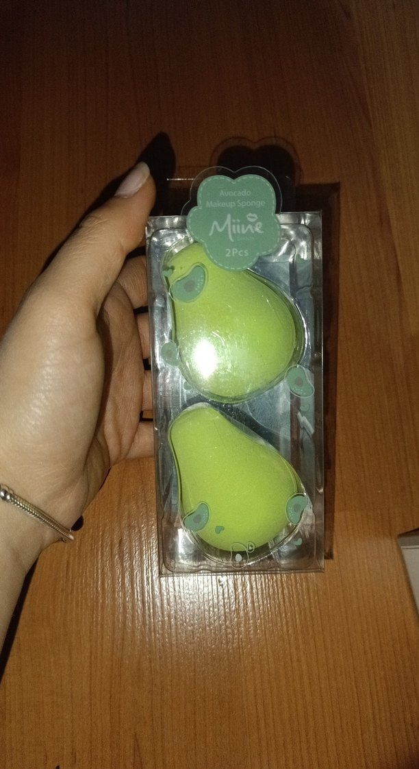 Avokado şeklinde, pastel yeşil renkte 2 adet makyaj süngeri. Yumuşak dokusu ile pürüzsüz makyaj sağlar. "Miine" markalıdır.