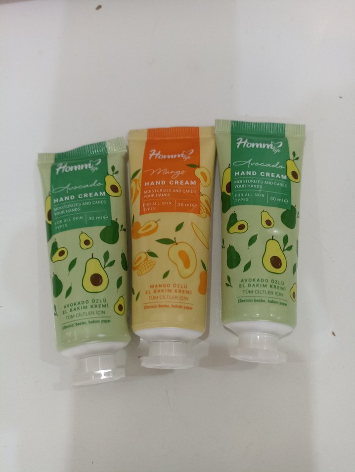 Avokado ve mango özlü el kremleri, tüm cilt tipleri için nemlendirici ve bakım sağlar. Her tüp 30 ml'dir tanesi 85 TL 3 adet 255 TL dir