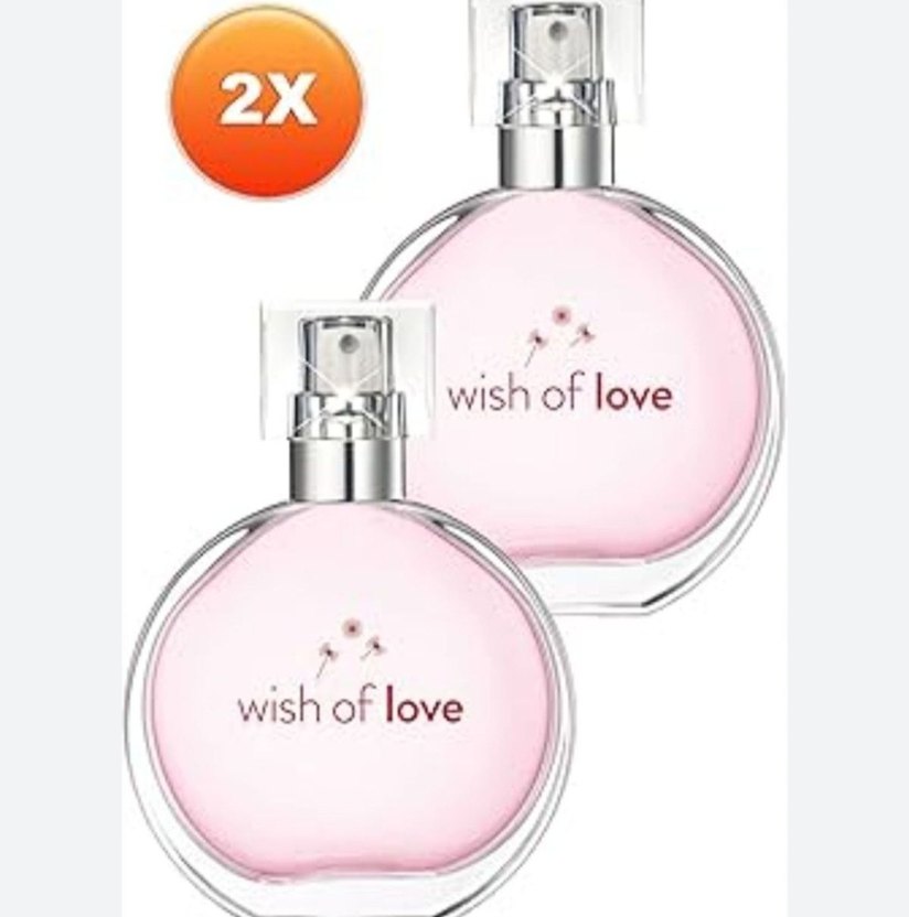 İki adet Wish of Love kadın parfümü içeren set, pembe şişelerde hafif çiçeksi koku sunar.