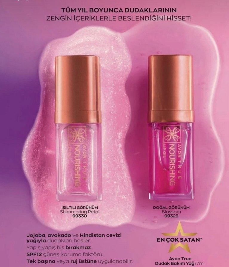 Avon True dudak parlatıcısı, jojoba, avokado ve hindistan cevizi yağı ile besleyici özellik taşır. Yapış yapış his bırakmaz, SPF12 güneş koruması sağlar, tek başına veya ruj üstüne uygulanabilir. 2 adet Avon dudak yağı Avon Dudak Bakım Yağı #kadın #kozmetik #dudakmakyajı #dudakbakımyağı #dudakparlatıcısı #simli #parlak #pembe #avon #defosuz #yeniveetiketli #günlük #işortamı #shimmeringpetal #blossom