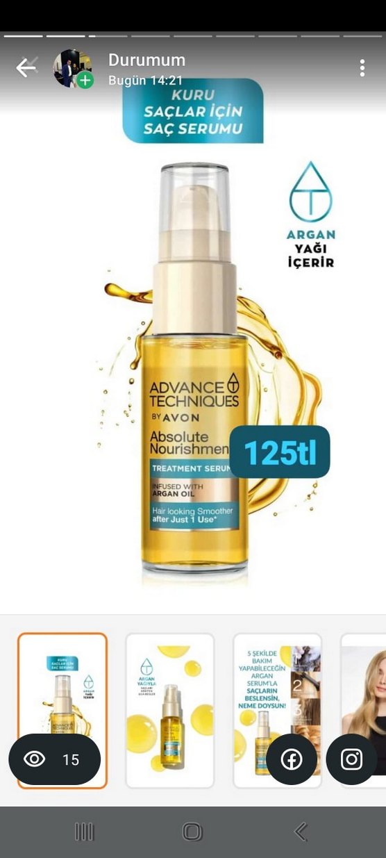 Avon Absolute Nourishment bakım serumu, argan yağı içerir ve saçları sadece bir kullanımdan sonra daha pürüzsüz yapar. Saçı besler ve dokusunu iyileştirir.