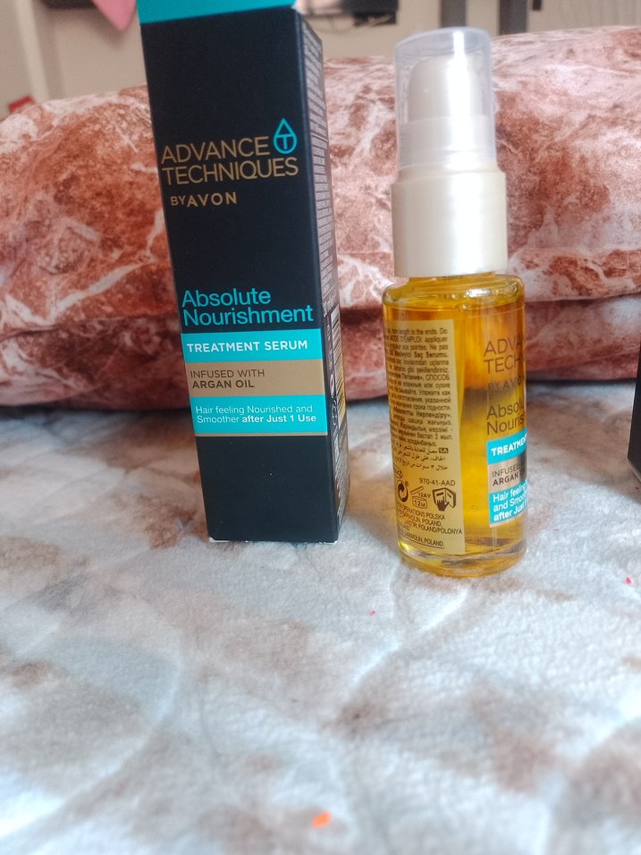 Avon Absolute Nourishment argan yağı içeren saç serumu. Saçı besler ve kullanımdan sonra yumuşaklık sağlar.