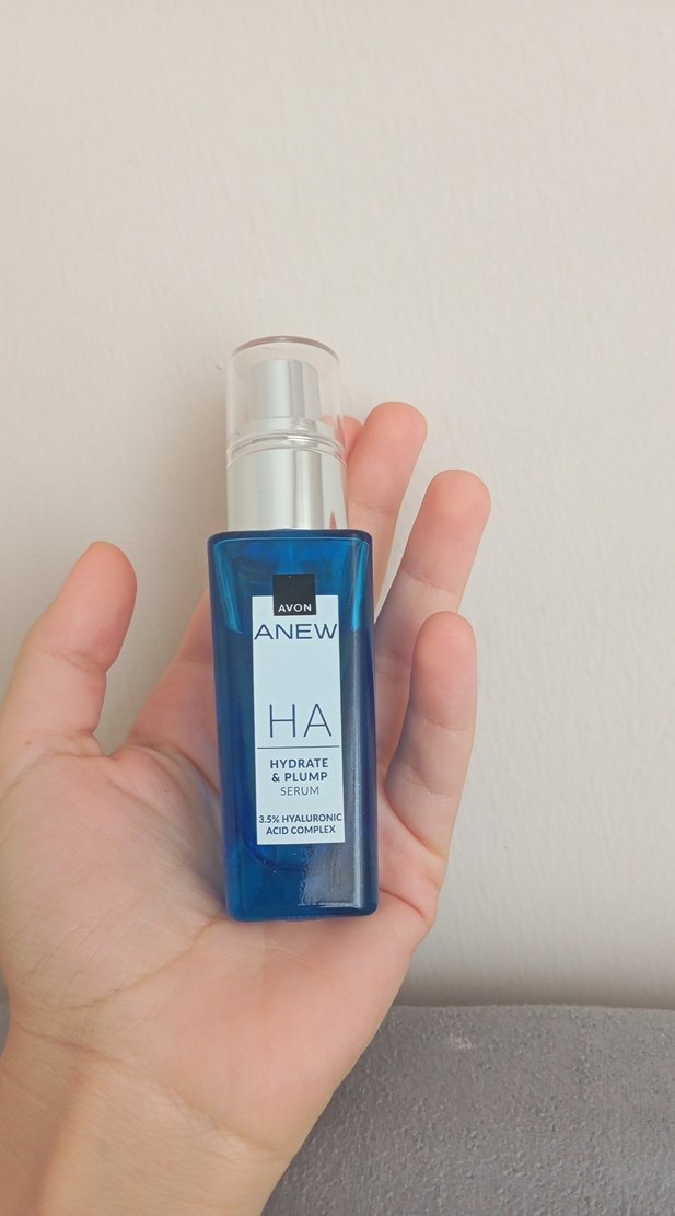 Parlak mavi şişede Avon Anew HA serum, %3,5 hyaluronik asit kompleksi ile nemlendirme ve dolgunluk sağlar.