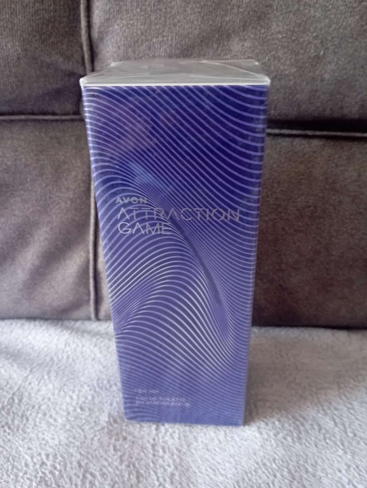 Avon Attraction Game kadın parfümü, şık mavi kutuda. Çekici ve etkileyici bir koku sunar.
