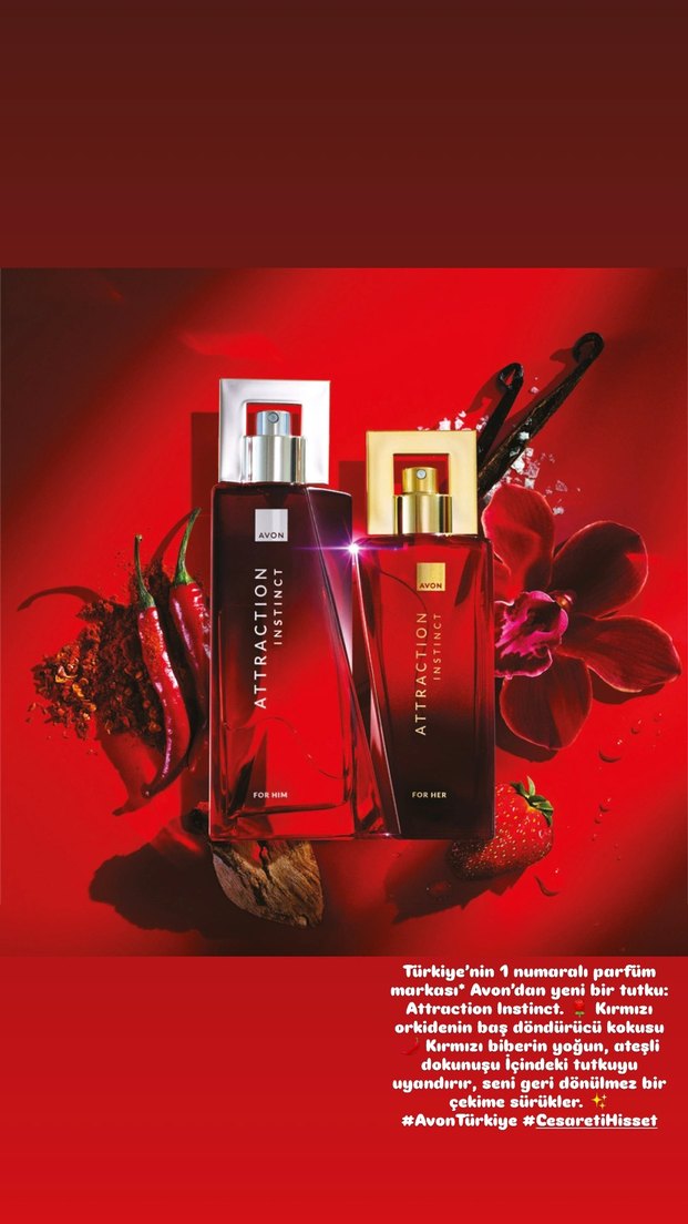 Avon Attraction Instinct Erkek Parfümü tutkuyu ateşleyen KIRMIZI ACI BİBER, yoğun odunsu PAÇULİ ve iç ısıtan VANİLYA Koku türü: Odunsu baharatlı
