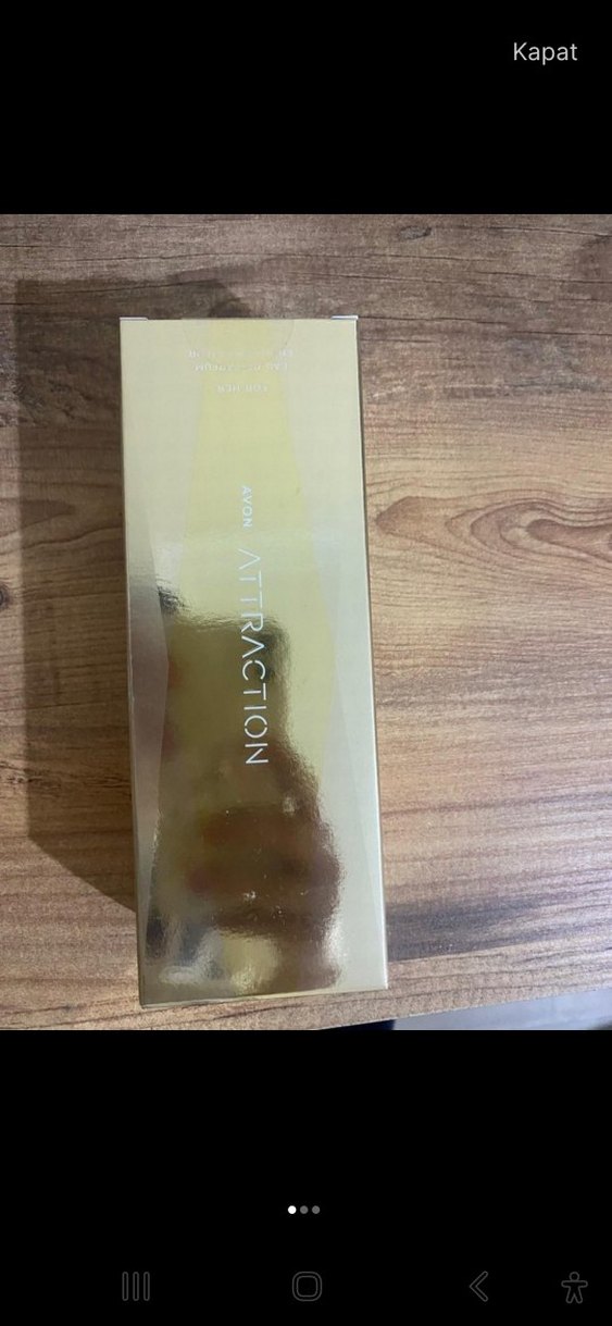 Avon Attraction kadın parfümü, parlak altın kutuda sunulur ve etkileyici bir koku deneyimi sağlar. ✨