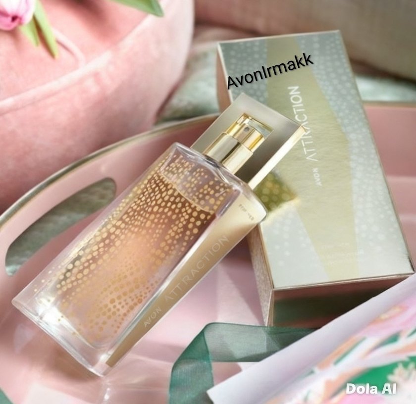 Avon Attraction kadın parfümü, altın detaylı sprey kapağı ve şık cam şişesiyle sofistike bir koku sunar.