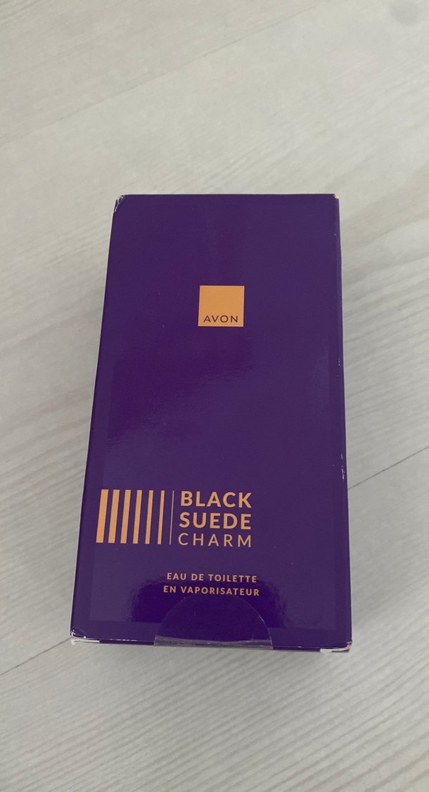 Avon Black Suede Charm, koyu renkli, gotik tarzda, Paris etkisi taşıyan erkekler için eau de toilette parfümdür. Mor ambalajıyla dikkat çeker.