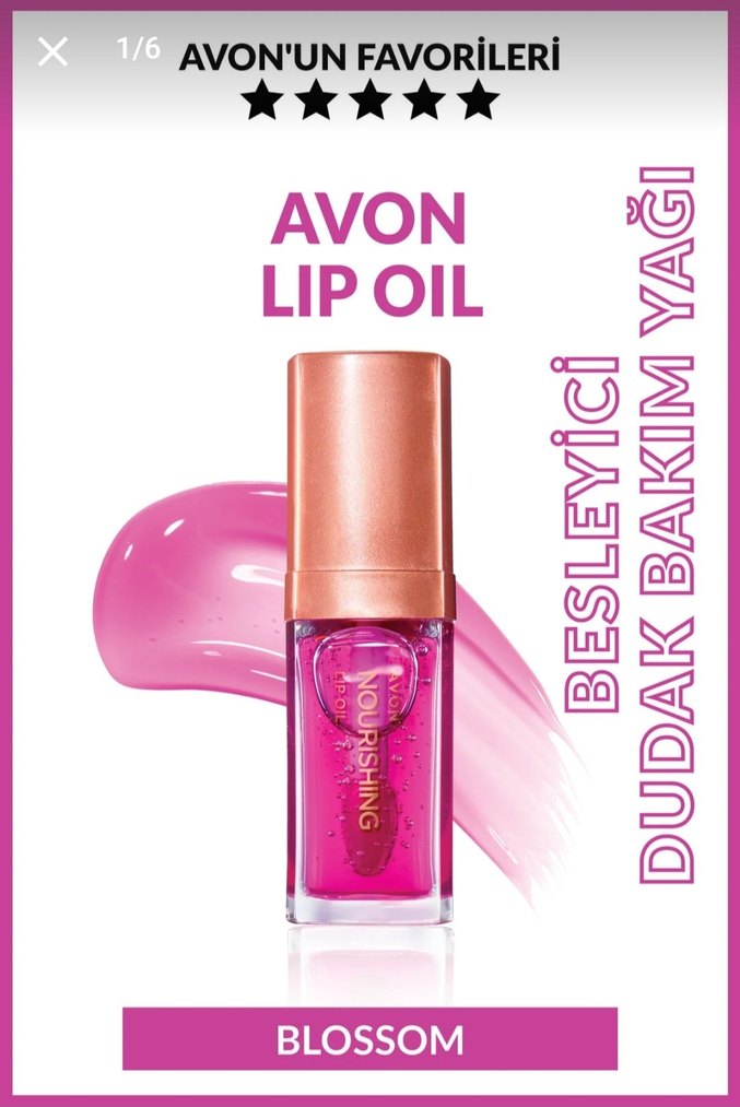 Avon Blossom besleyici dudak yağı, canlı pembe renkte dudaklara bakım ve nem sağlar.