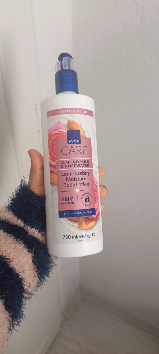 Avon Care badem sütü ve gül suyu içeren vücut losyonu, kuru ve çok kuru ciltler için 48 saate kadar uzun süreli nem sağlar. Sınırlı sayıda, 720ml.