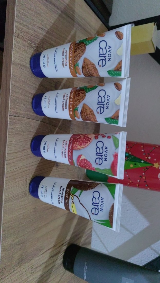 Avon Care el kremleri, kakao yağı, nar ve hindistan cevizi gibi farklı kokularda, 75 ml tüplerde, ellerinizi besler ve korur.