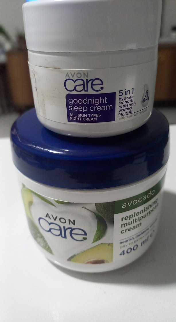 Avon Care Goodnight Sleep Cream gece boyunca tüm cilt tiplerini nemlendirir, pürüzsüzleştirir, yeniler, korur ve besler. Avon Care Avokado Çok Amaçlı Krem kuru cildi besler.