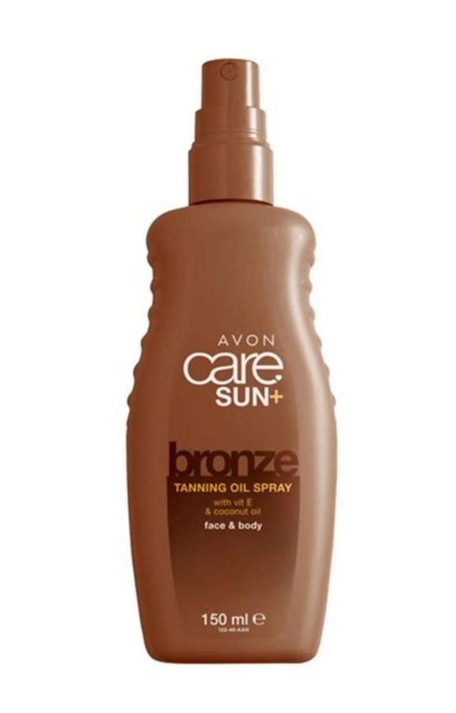 Avon Care Sun+ yüz ve vücut için E vitamini ve hindistancevizi yağı içeren bronzlaştırıcı yağ spreyi, cildi besler ve bronzlaşmayı destekler. 150 ml.