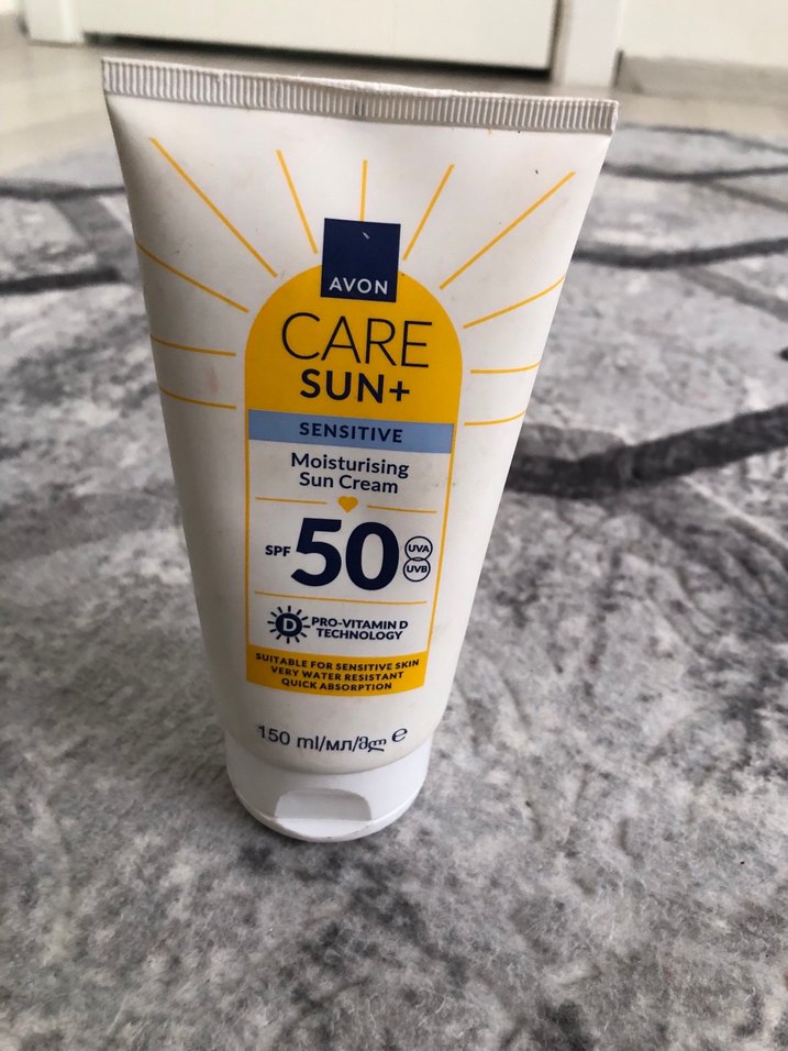 Avon Care Sun+ Hassas ciltler için uygun, SPF 50 korumalı, nemlendirici güneş kremidir. Pro-vitamin D teknolojisi içerir, suya dayanıklıdır ve hızlı emilir. Cok az kullanıldı