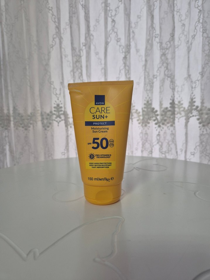 Avon Care Sun+ SPF 50 güneş kremi, nemlendirici özelliğe sahip olup cildi yüksek koruma sağlar ve E vitamini teknolojisi içerir. Hassas ciltler için uygundur. ☀️