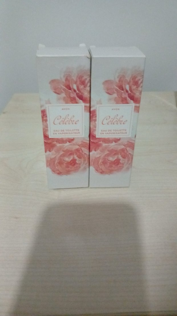 Avon Célebre kadın parfümü, sprey formda eau de toilette, çiçek desenli kutuda. İki adet şişe seti. 2 tanesi 500