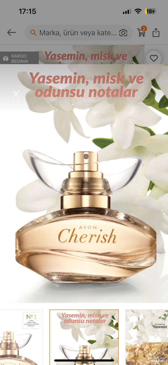 Avon Cherish kadın parfümü, yasemin, misk ve odunsu notalarla dengeli ve zarif bir koku sunar.