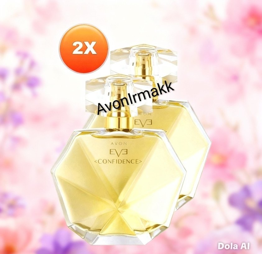 Avon Eve Confidence kadın parfümü, 2'li set halinde, şık şişelerde taze ve kendinden emin koku sunar. Günlük kullanım için uygundur.