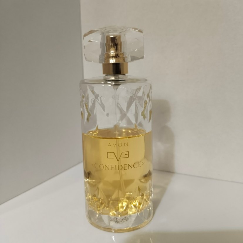 Avon Eve Confidence kadın parfümü, altın sarısı kokusu ve şeffaf kapağıyla keskin hatlara sahip cam şişede.100 ml di Resimlerde görüldüğü gibidirKutusu yoktur
