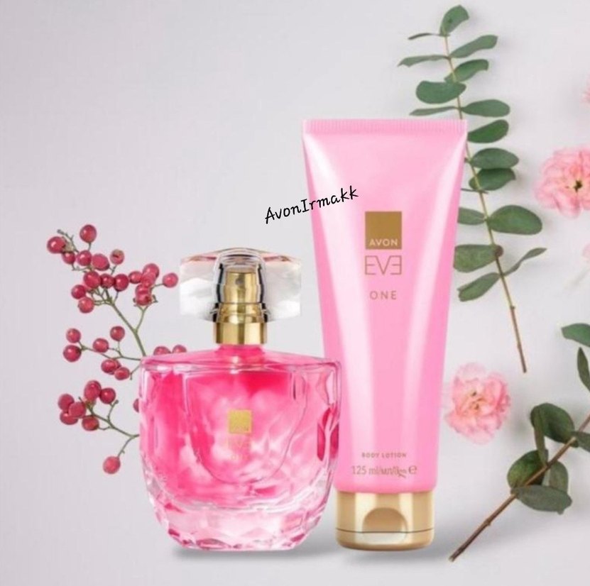 Avon Eve One, 125 ml tüpte uyumlu vücut losyonu ile birlikte çiçeksi kokusu olan kadın parfümüdür.