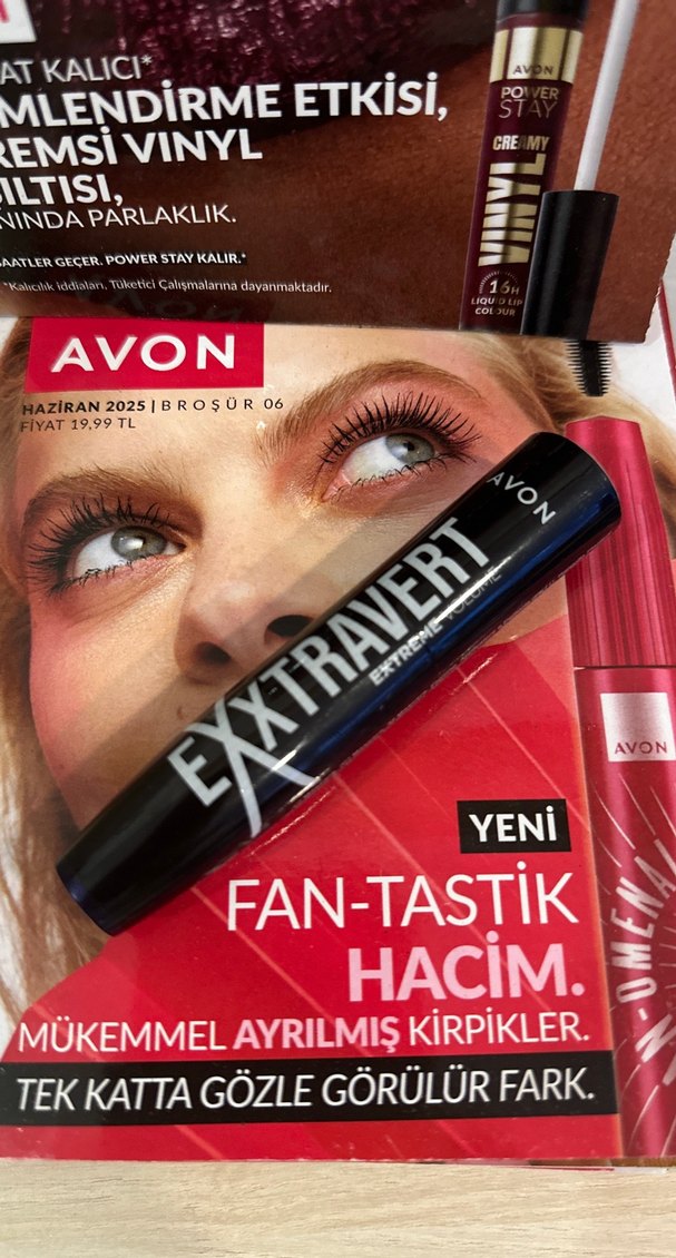 Avon Exxtravert maskara siyah renginde, nemlendirici etkisiyle 16 saate kadar kalıcı yoğun hacim sağlar. ✨