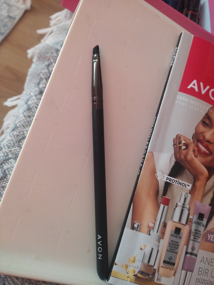 Avon siyah saplı makyaj fırçası, açılı kıllarıyla hassas uygulama sağlar. Sapı pürüzsüz ve tutması rahattır. ✨