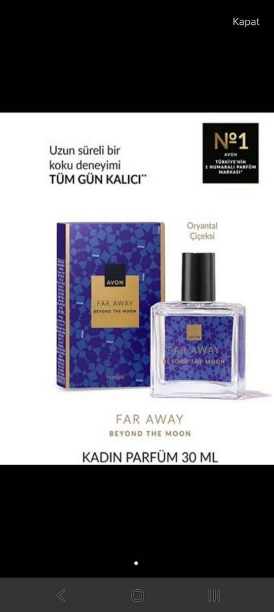 Avon Far Away Beyond The Moon, kadınlar için oryantal çiçeksi kokusu ile uzun süre kalıcı bir parfümdür. 30 ml şişede tüm gün etkili koku sunar.