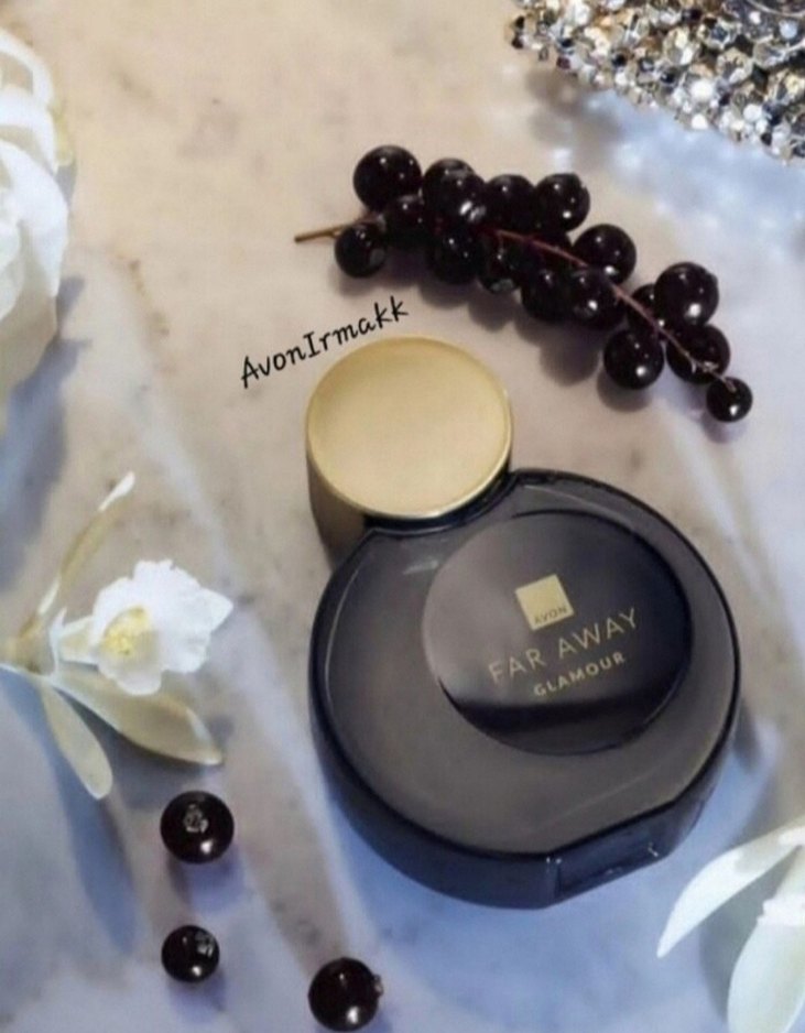 Avon Far Away Glamour kadın parfümü, şık ve zarif kokusu ile dikkat çeker. Şişesi koyu renk ve altın kapaklıdır.