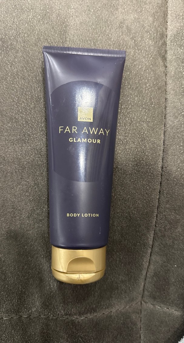 Avon Far Away Glamour vücut losyonu, cildi nemlendirir ve yumuşaklık sağlar. Mor tüp ve altın kapak tasarımına sahiptir.