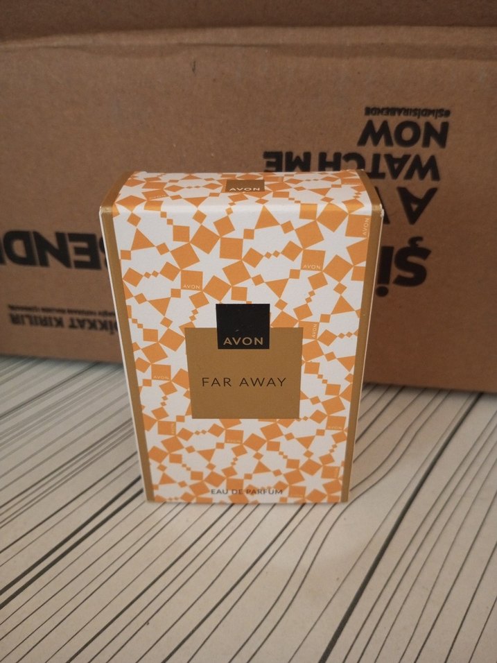 Avon Far Away kadın parfümü, sıcak tonlarda desenli kutusuyla dikkat çeker. Kendine özgü ve zarif bir koku sunar. 30 ml