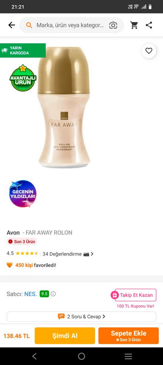 Avon Far Away roll-on deodorant, etkili ter önleyici koruma ve kolay uygulama sağlar. Kompakt tasarımı ile tercih edilir.