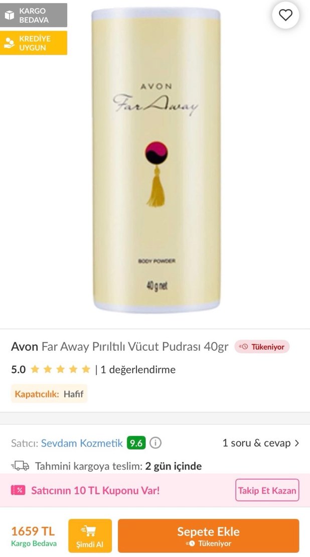 Avon Far Away Pırıltılı Vücut Pudrası. 40 ml’dir. Sıfırdır. Hiç kullanılmamıştır. İade kabul edilmemektedir!!!