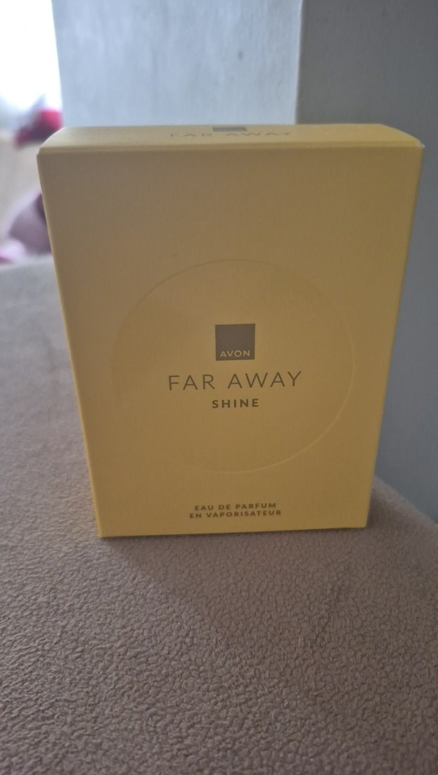 Avon Far Away Shine kadın parfümü, aydınlık ve zarif bir kokuya sahiptir. Yumuşak sarı kutuda sunulmaktadır.