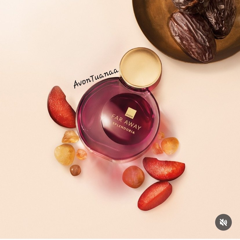 Avon Far Away Splendoria kadın parfümü, derin mor şişesi ve altın kapaklı şık tasarımıyla dikkat çeker.