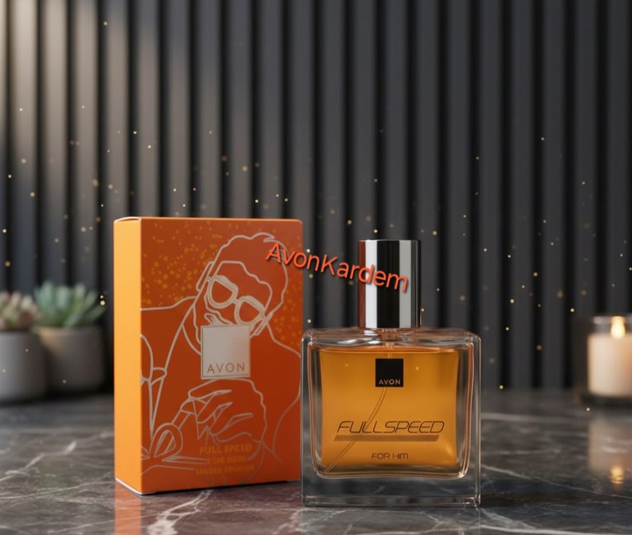 Avon Full Speed erkek parfümü, parlak turuncu renkte, çağdaş ve göz alıcı bir stile sahip. Modern ve canlı bir koku sunar.