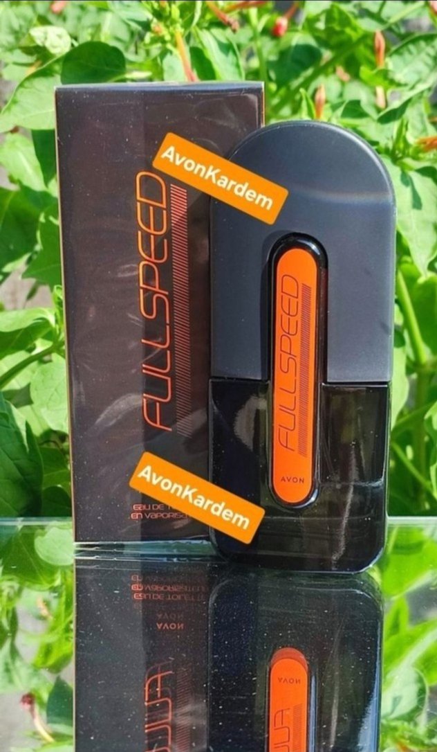 Avon Full Speed erkek parfümü, koyu turuncu şişede, cesur sokak stili tasarımıyla. Koku, karşı kültür havası yansıtıyor.