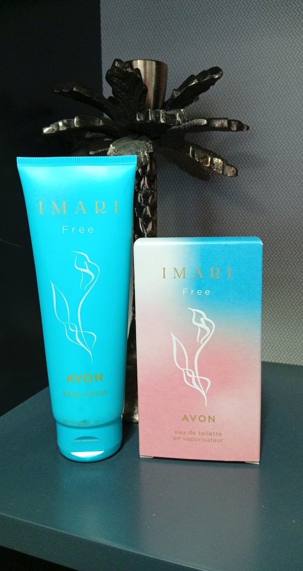 Avon Imari Free, taze çiçeksi kokulu vücut losyonu ve eau de toilette setidir. Şık mavi-pembe geçişli ambalaja sahiptir.