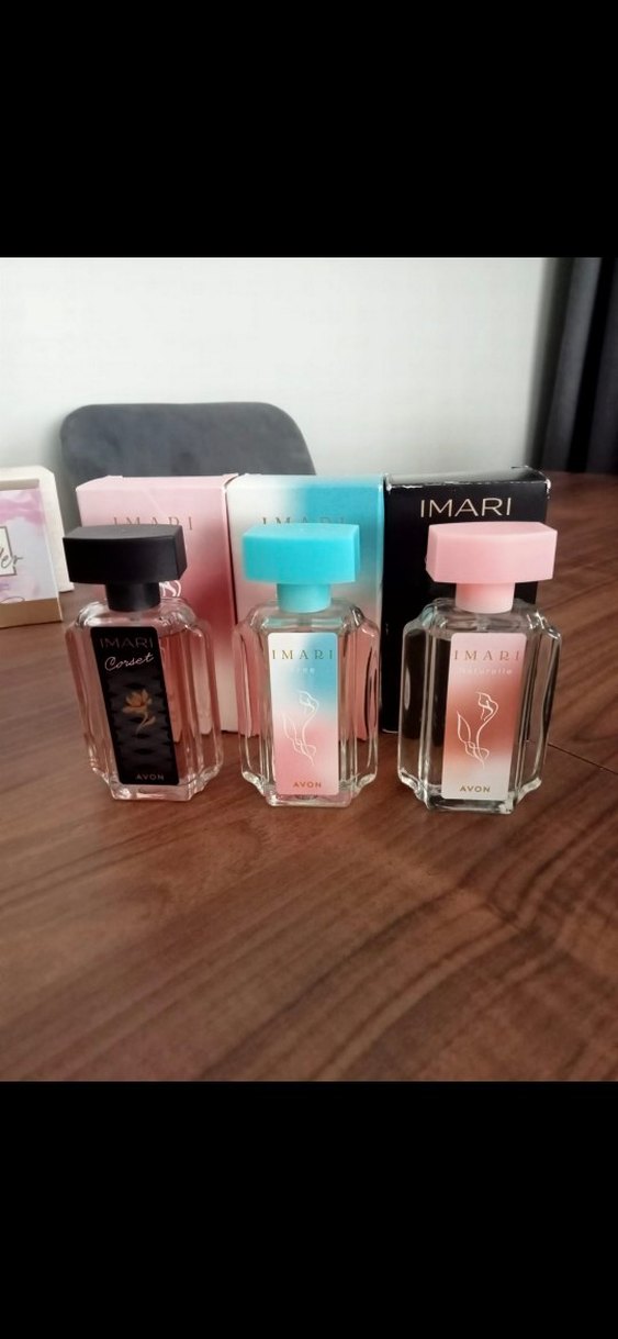 Avon Imari kadın parfüm farklı renk kapaklı ve şık şişelerde üç farklı koku içerir. ikili veya üçlü set olarak almak isterseniz indirim yaparım