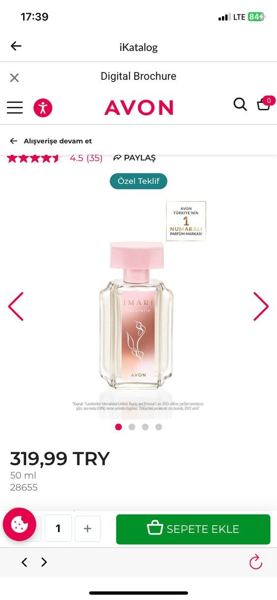 Avon Imari kadın parfümü, 50 ml şişede zarif çiçeksi koku sunar. 4,5 yıldızlı popüler bir üründür.