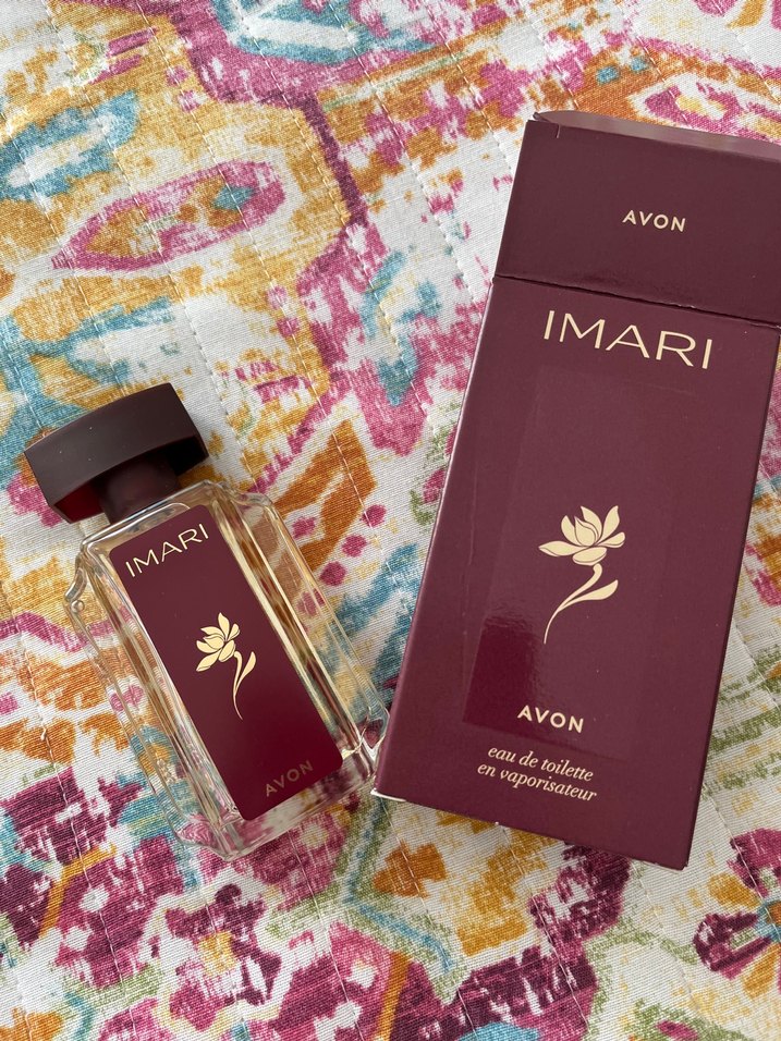 Avon Imari kadın parfümü, şişede çiçek tasarımıyla birlikte koyu bordo kutuda sunulur. Eau de toilette sprey olarak kullanılır.