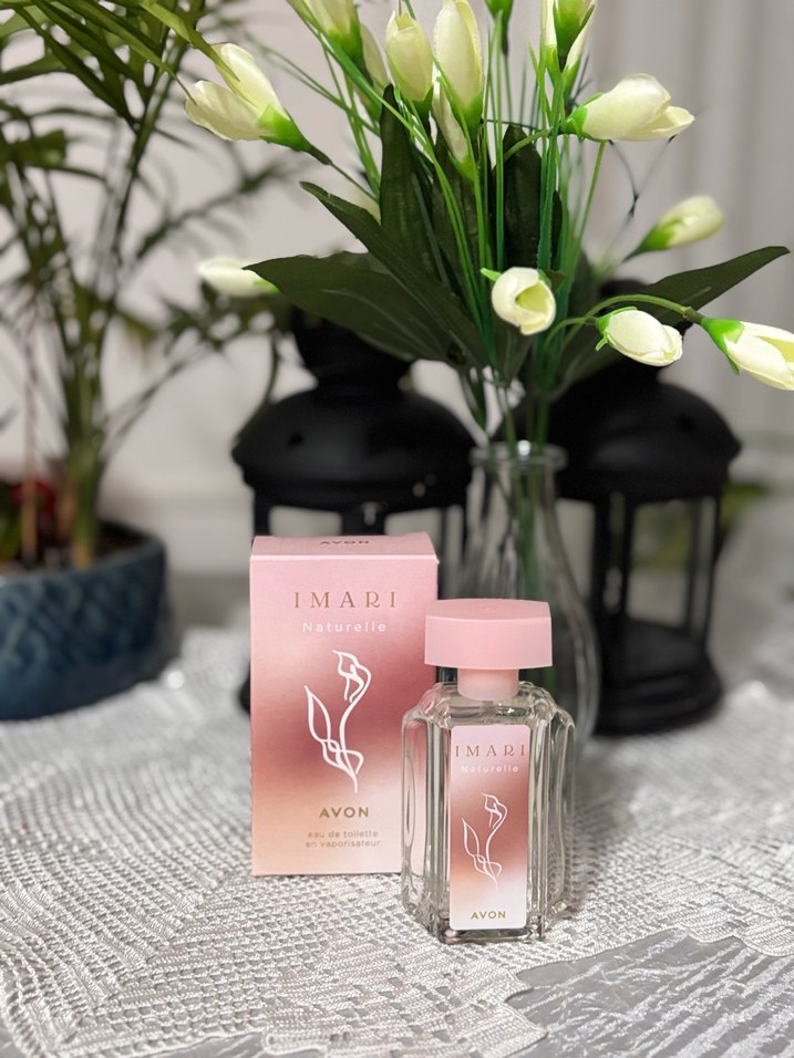 Avon Imari Naturelle kadın parfümü, zarif pembe şişesi ve çiçek desenli tasarımıyla taze ve şık bir koku sunar.