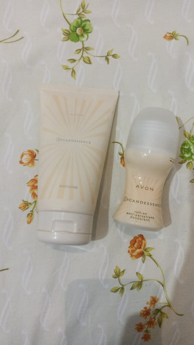 Avon Incandessence vücut losyonu ve roll-on deodorant seti.parfümle set halinde almıştım bu ikisini kullanmadım krem denendi