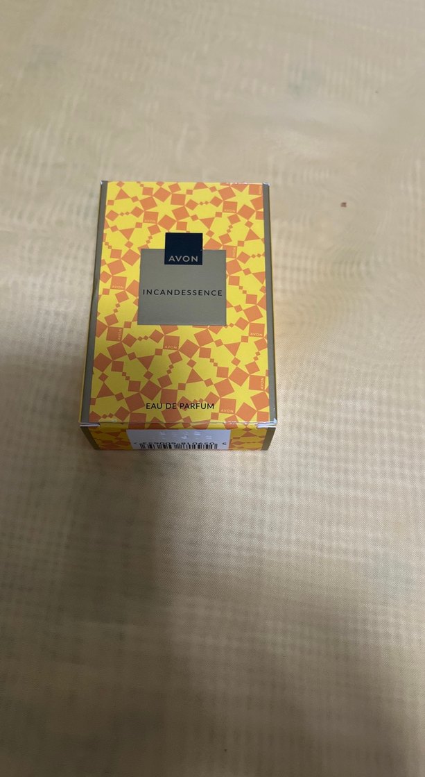 Avon Incandessence kadın parfümü, kalıcı ve çiçeksi sıcak bir kokuya sahiptir. Ambalajı sarı ve turuncu geometrik desenlidir.