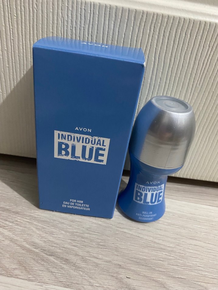 Avon Individual Blue erkek parfüm ve roll-on deodorant seti, parlak mavi tasarım ve minimalist stil ile. Eau de toilette ve ter önleyici roll-on içerir. 2 Li