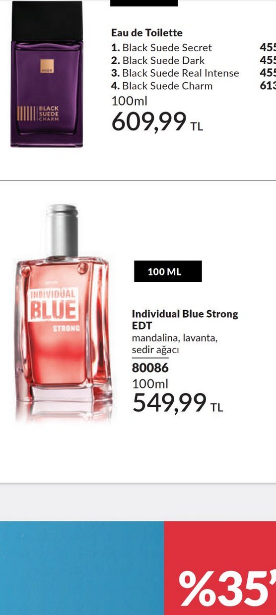 Mandalin, lavanta ve sedir ağacı notalarına sahip Avon Individual Blue Strong EDT, yaz için taze ve canlı bir koku sunar. Şık şişe tasarımıyla dikkat çeker.