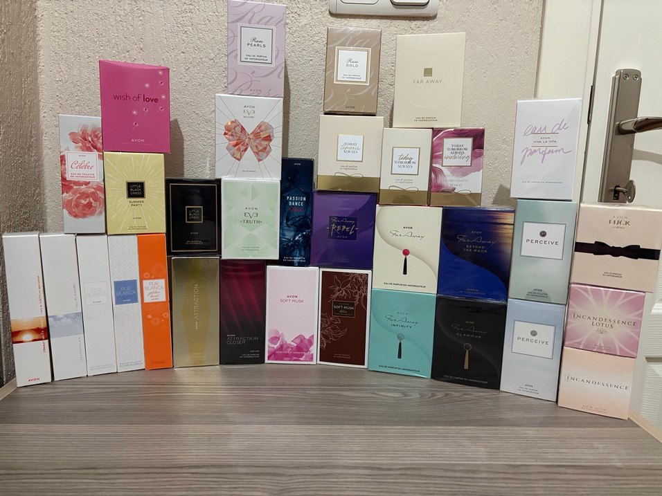Avon'un Far Away, Rare Pearls ve Soft Musk gibi çeşitli kokularını içeren kadın parfüm koleksiyonu. Her kutu farklı bir esans sunar. 250₺ den başlayan fiyatlar ile