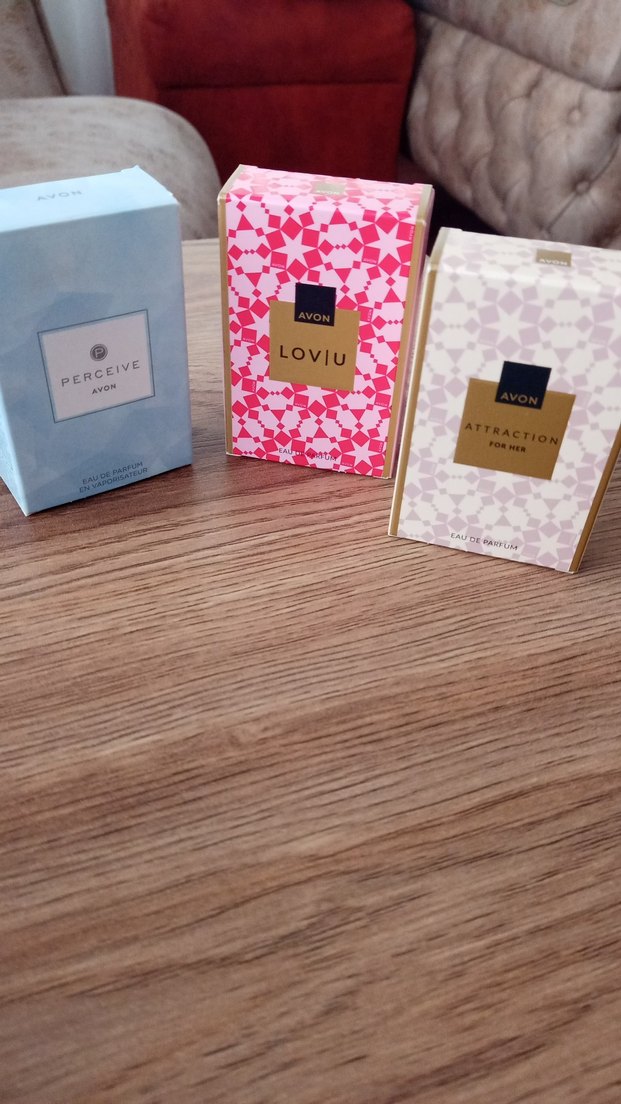 Avon'un Perceive, Loviu ve Attraction adlı üç farklı kadın parfümünü içeren set. Her biri farklı tasarıma sahip kutularda sunulmaktadır.